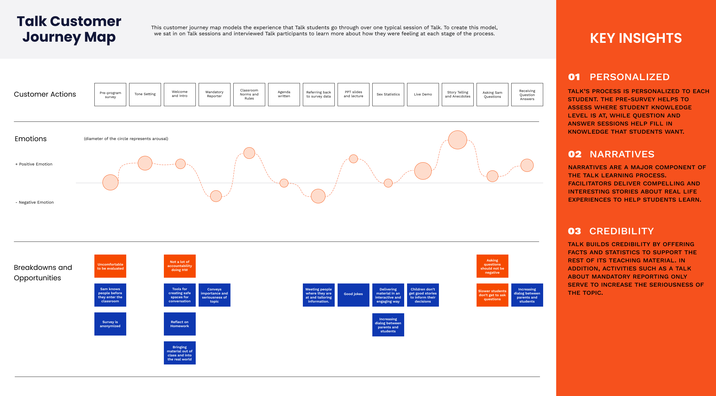 The secondary research informed our interviewing. We talked to current participants of Talk, as well as students, parents, healthcare providers, and experts in related fields.